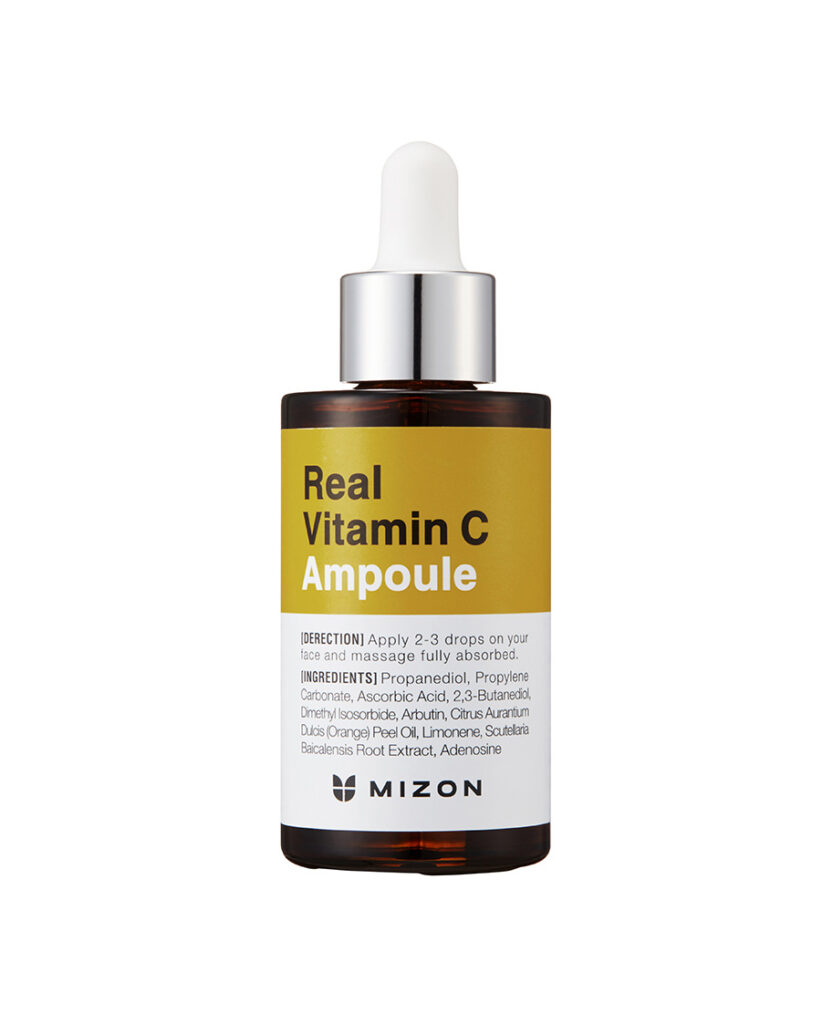 Mizon Real Vitamin C Ampoule on korkeapitoisuuksinen C-vitamiiniseerumi, joka auttaa kirkastamaan ihoa, tasoittamaan sen sävyä ja vähentämään pigmenttimuutoksia.